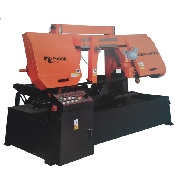 ●液压控制锯切进给、带锯条的张紧及工件夹紧。